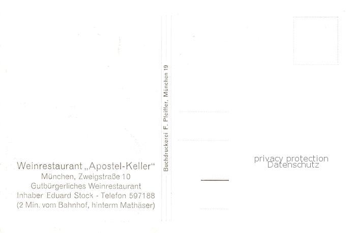 73794674 Muenchen Bayern Weinrestaurant Apostel-Keller Innenansicht postalisch nicht gelaufen Erhaltung siehe scans [LiesaD40] Lies Katcode 11110009162000