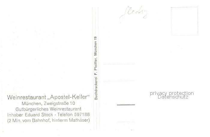 73794676 Muenchen Bayern Weinrestaurant Apostel-Keller Innenansicht postalisch nicht gelaufen Erhaltung siehe scans [LiesaD40] Lies Katcode 11110009162000