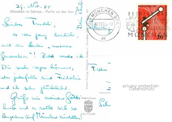 72640844 alte Postkarte Muenchen Bayern Winter Isar postalisch gelaufen Erhaltung siehe scans [KathaD79] KatCode: 11110009162000