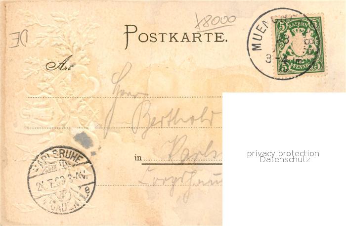 43149403 alte Postkarte Muenchen Bayern Wittelsbacgerbrunnen Stadtwappen postalisch gelaufen Erhaltung siehe scans [KathaD81] KatCode: 11110009162000