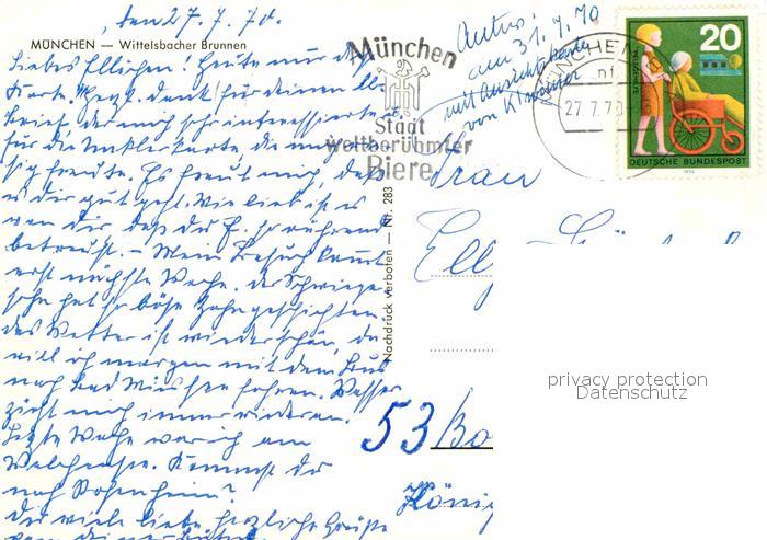 72891045 alte Postkarte Muenchen Bayern Wittelsbacher Brunnen postalisch gelaufen Erhaltung siehe scans [WerneD78] KatCode: 11110009162000