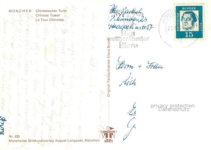 73106642 alte Postkarte Muenchen Chinesischer Turm postalisch gelaufen Erhaltung siehe scans [NatalD47] KatCode: 11110009162000