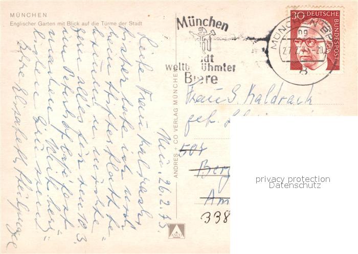 73005488 alte Postkarte Muenchen Englischer Garten Tuerme postalisch gelaufen Erhaltung siehe scans [KathaD81] KatCode: 11110009162000