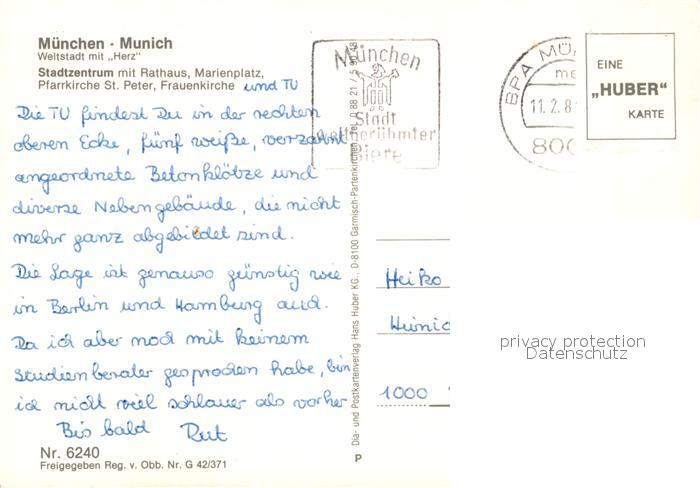 73106560 alte Postkarte Muenchen Fliegeraufnahme Stadtzentrum Rathaus Marienplatz Frauenkirche postalisch gelaufen Erhaltung siehe scans [KathaD81] KatCode: 11110009162000