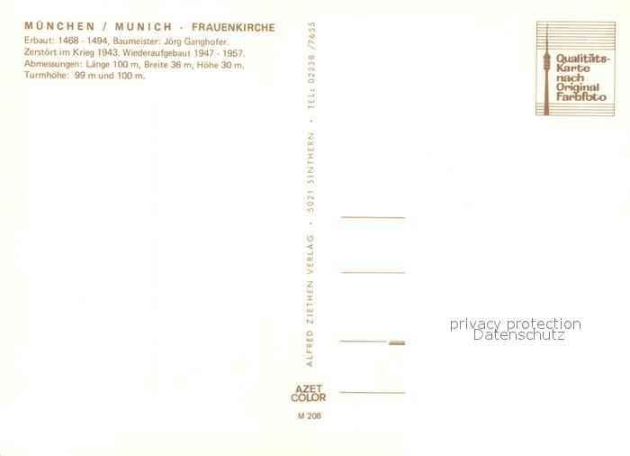 73177162 Muenchen Frauenkirche postalisch nicht gelaufen Erhaltung siehe scans [PaolaD17] KatCode: 11110009162000