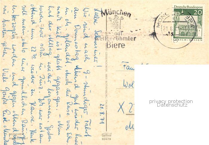 73608905 alte Postkarte Muenchen Hauptbahnhof postalisch gelaufen Erhaltung siehe scans [WerneD78] KatCode: 11110009162000
