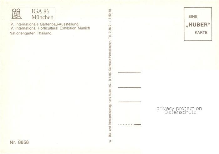 73177647 Muenchen IGA 1983 Internationale Gartenbau Ausstellung Nationengarten Thailand Wasserspiegelung Huber Karte Nr 8858 postalisch nicht gelaufen Erhaltung siehe scans [FriedD77] KatCode: 11110009162000