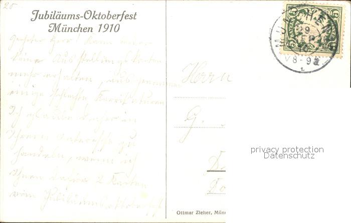 31722429 alte Postkarte Muenchen Jubilaeums-Oktoberfest postalisch gelaufen Erhaltung siehe scans KatCode: 11110009162000