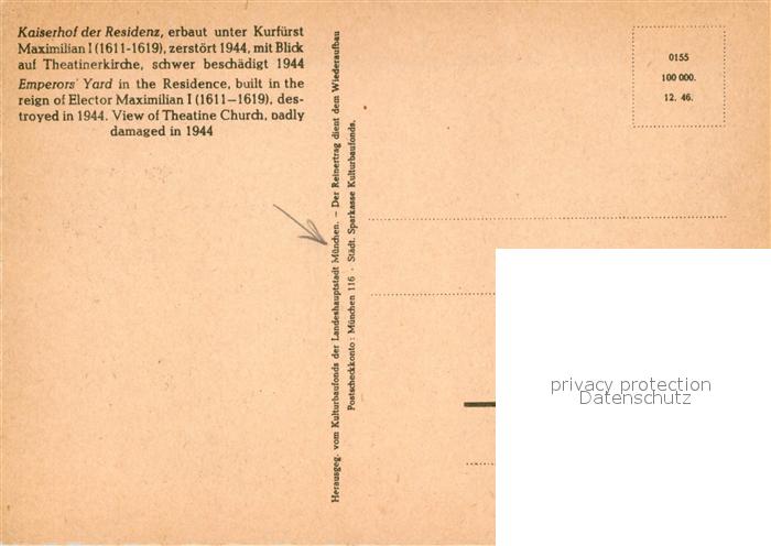 73145034 Muenchen Kaiserhof der Residenz 17. Jhdt. Theatinerkirche Kuenstlerkarte postalisch nicht gelaufen Erhaltung siehe scans [FriedD77] KatCode: 11110009162000
