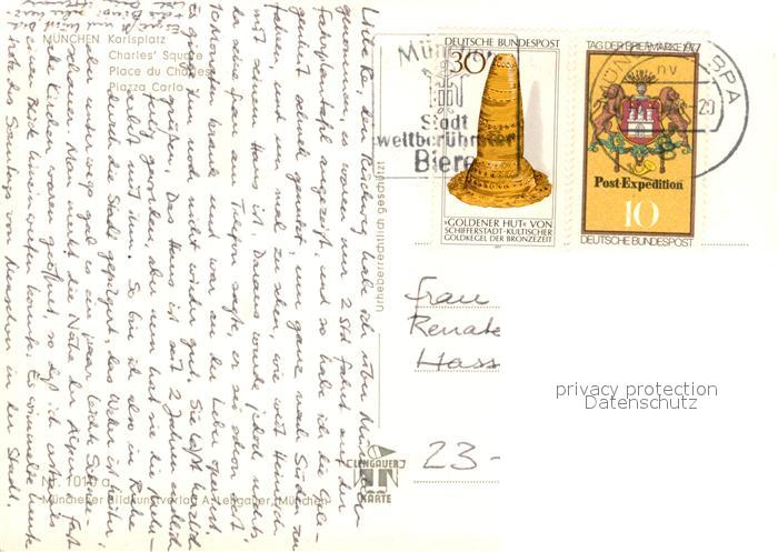 73164793 alte Postkarte Muenchen Karlsplatz postalisch gelaufen Erhaltung siehe scans [NatalD47] KatCode: 11110009162000