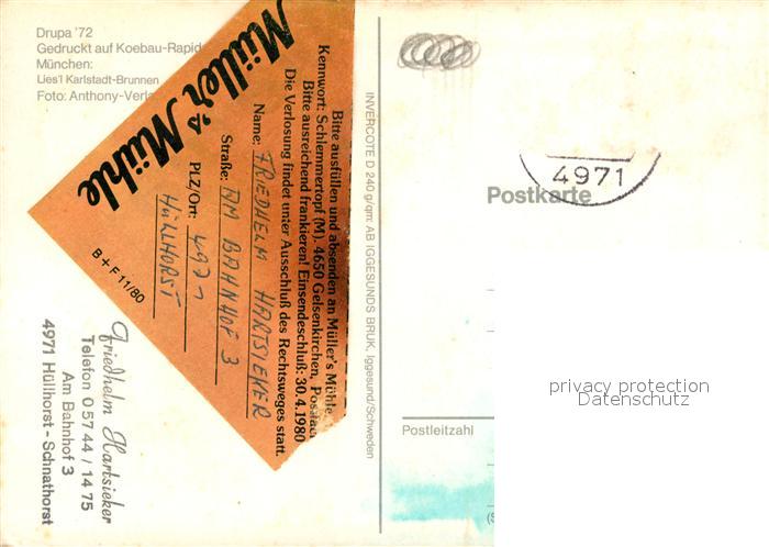73311021 alte Postkarte Muenchen Karlstadt Brunnen Maibaum Drupa postalisch gelaufen Erhaltung siehe scans [FriedD77] KatCode: 11110009162000