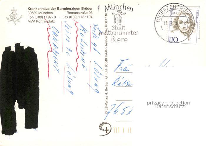 73070599 alte Postkarte Muenchen Krankenhaus der Barmherzigen Brueder Fliegeraufnahme postalisch gelaufen Erhaltung siehe scans [FriedD77] KatCode: 11110009162000