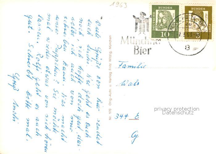 73138773 alte Postkarte Muenchen Lichterstadt Friedensengel Hofbraeuhaus Frauentuerme Kirche Stachus Brunnen Marienplatz Nachtaufnahmen postalisch gelaufen Erhaltung siehe scans [FriedD77] KatCode: 11110009162000
