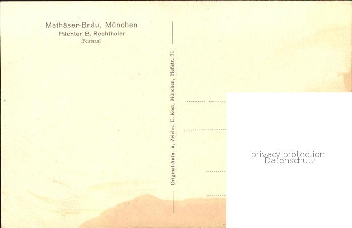 31716844 Muenchen Mathaefer Braeu Festsaal B. Rechthaler postalisch nicht gelaufen Erhaltung siehe scans KatCode: 11110009162000