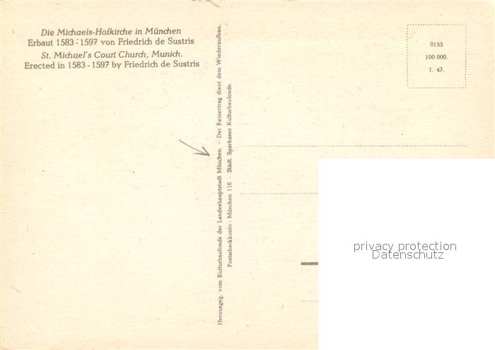 73145033 Muenchen Michaelshofkirche 16. Jhdt. Erbauer Friedrich de Sustris Kuenstlerkarte postalisch nicht gelaufen Erhaltung siehe scans [FriedD77] KatCode: 11110009162000