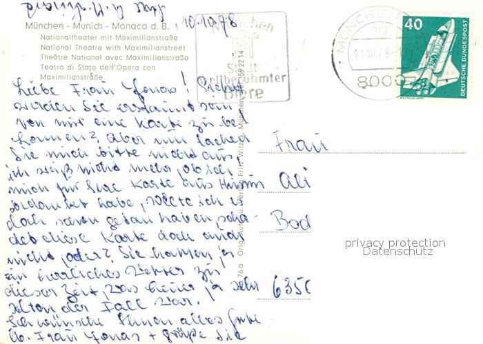73157044 alte Postkarte Muenchen Nationaltheater Maximilianstrasse postalisch gelaufen Erhaltung siehe scans [WerneD78] KatCode: 11110009162000