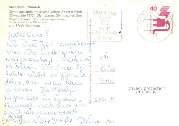 72999484 alte Postkarte Muenchen Olympiagelaende Olympiaturm postalisch gelaufen Erhaltung siehe scans [WerneD78] KatCode: 11110009162000
