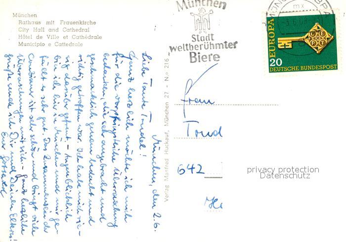 73040715 alte Postkarte Muenchen Rathaus Frauenkirche postalisch gelaufen Erhaltung siehe scans [NatalD47] KatCode: 11110009162000