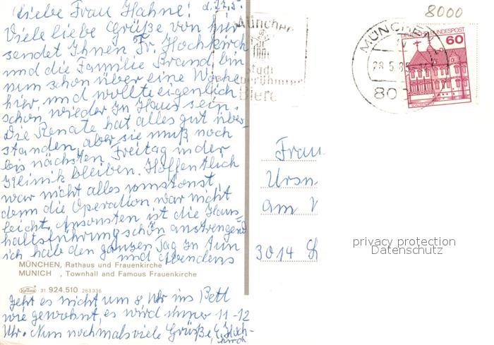 73059253 alte Postkarte Muenchen Rathaus und Frauenkirche postalisch gelaufen Erhaltung siehe scans [WerneD78] KatCode: 11110009162000