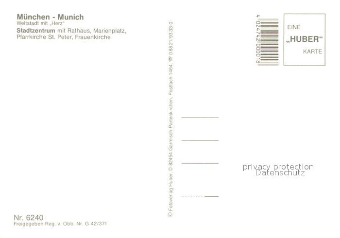 73181278 Muenchen Stadtzentrum Rathaus Marienplatz Pfarrkirche St Peter Frauenkirche Fliegeraufnahme Huber Karte Nr 6240 postalisch nicht gelaufen Erhaltung siehe scans [FriedD77] KatCode: 11110009162000