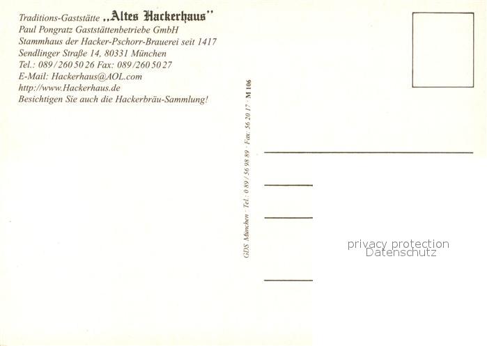 73493121 alte Postkarte Muenchen Traditions Gaststaette Altes Hackerhaus Gastraeume Hochzeitsmotiv postalisch gelaufen Erhaltung siehe scans [WerneD78] KatCode: 11110009162000