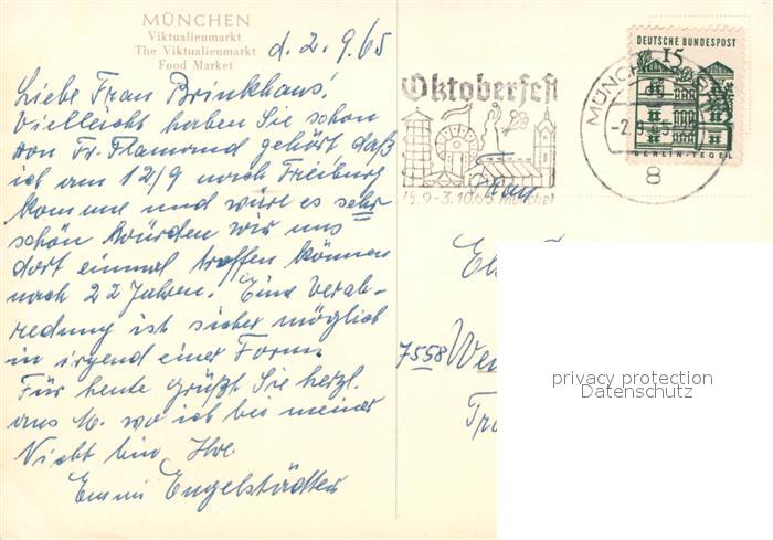 73336638 alte Postkarte Muenchen Viktualienmarkt postalisch gelaufen Erhaltung siehe scans [WerneD78] KatCode: 11110009162000