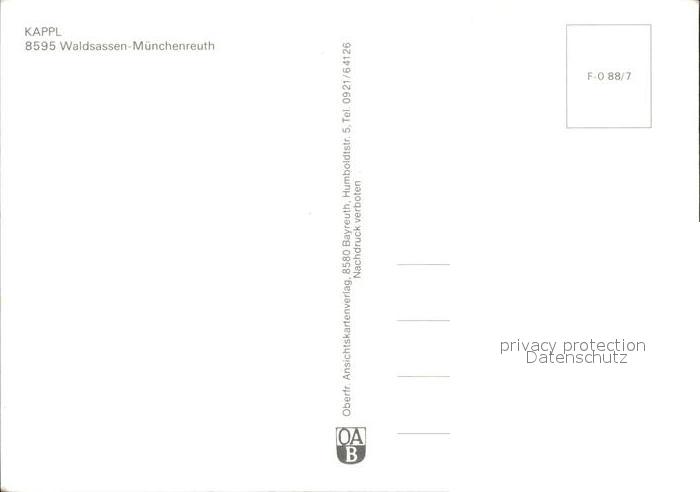 72451032 Muenchenreuth Waldsassen Kappl postalisch nicht gelaufen Erhaltung siehe scans KatCode: 11110009377158