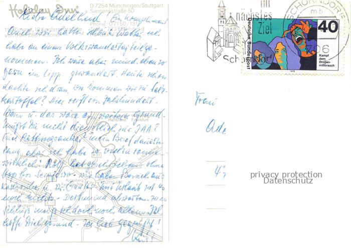 74096030 alte Postkarte Muenchingen Korntal-Muenchingen Ludwigsburg BW Holiday Inn Foyer Gastraeume Appartement Hallenbad Bar postalisch gelaufen Erhaltung siehe scans [WerneD78] KatCode: 11110008118080