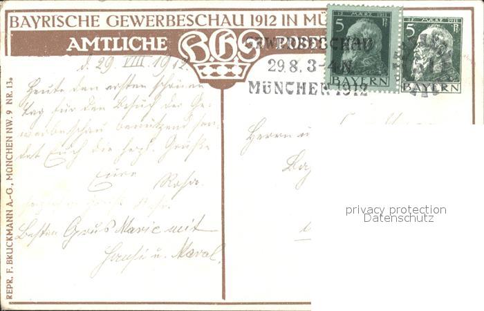 42325304 alte Postkarte Muenchner Kindl Bayrische Gewerbeschau Muenchen Kuenstlerkarte W. Krain postalisch gelaufen Erhaltung siehe scans KatCode: 11110009162000