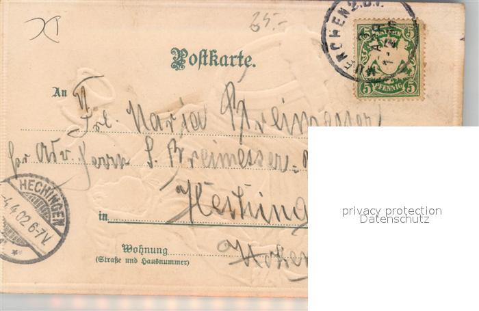 43261703 alte Postkarte Muenchner Kindl Bierfass Bierkrug Muenchen Litho postalisch gelaufen Prägedruck Erhaltung siehe scans [PaolaD17] KatCode: 11110009162000