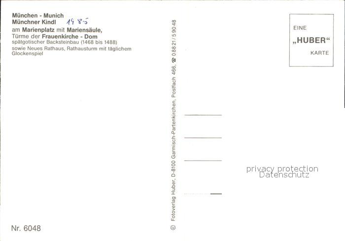 72309965 Muenchner Kindl Muenchen Marienplatz Mariensaeule Frauenkirche postalisch nicht gelaufen Erhaltung siehe scans KatCode: 11110009162000