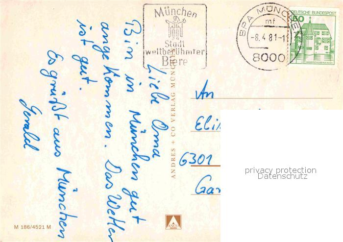72879730 alte Postkarte Muenchner Kindl Muenchen Olympiagelaende Bavaria Viktualienmarkt Feldherrnhalle postalisch gelaufen Erhaltung siehe scans [PaolaD17] KatCode: 11110009162000