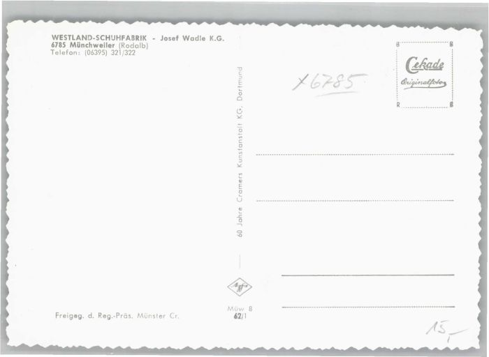 40702762 Muenchweiler Rodalb liegeraufnahme Westland Schuhfabrik Josef Wadle KG KatCode 11110007340032