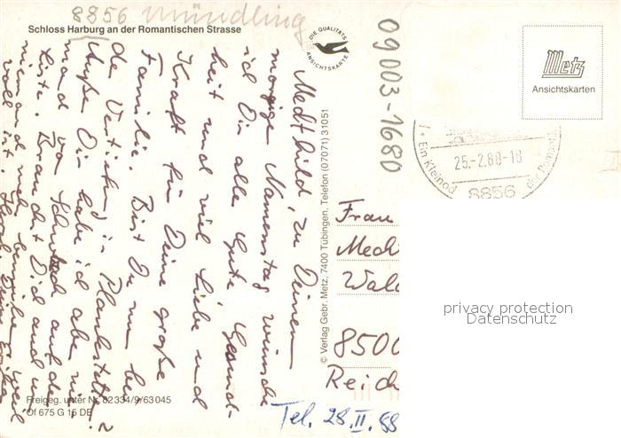 73744851 alte Postkarte Muendling Schloss Harburg Fliegeraufnahme postalisch gelaufen Erhaltung siehe scans [FriedD77] KatCode: 11110009779155