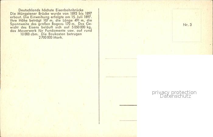 72422357 Muengsten Eisenbahn-Bruecke postalisch nicht gelaufen Erhaltung siehe scans KatCode: 11110005120000
