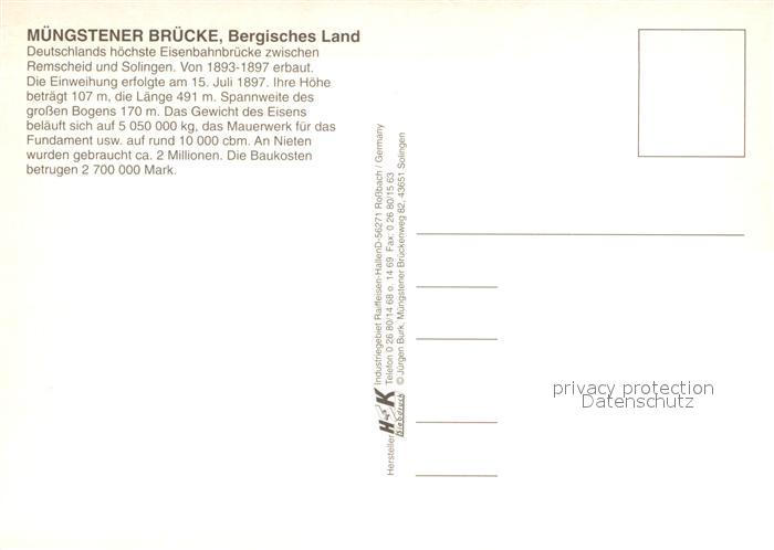 73013645 Muengsten Muengstener Bruecke postalisch nicht gelaufen Erhaltung siehe scans [WerneD78] KatCode: 11110005120000