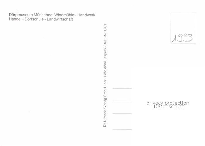 72892901 Muenkeboe Doerpmuseum Windmuehle Handwerk Handel Dorfschule postalisch nicht gelaufen Erhaltung siehe scans [WerneD78] KatCode: 11110003452023