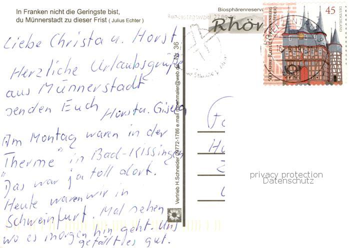 73839415 alte Postkarte Muennerstadt Fachwerkhaeuser Skulpturen Brunnen Kirche postalisch gelaufen Erhaltung siehe scans [FriedD77] KatCode: 11110009672135