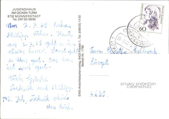 72149393 alte Postkarte Muennerstadt Jugendhaus am dicken Turm postalisch gelaufen Erhaltung siehe scans KatCode: 11110009672135