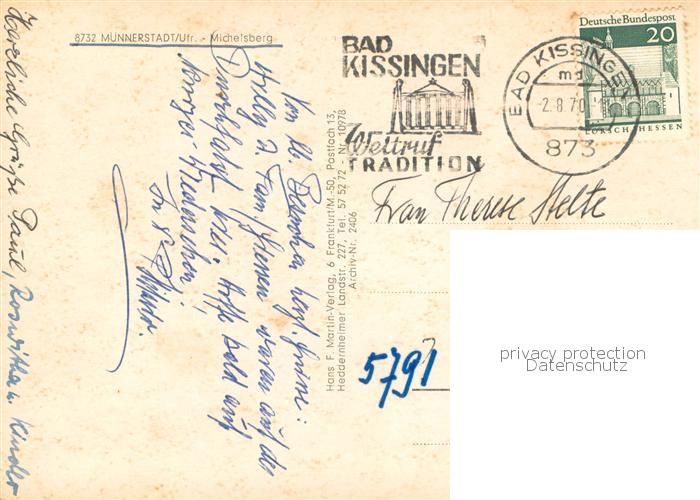 73777440 alte Postkarte Muennerstadt Michelsberg postalisch gelaufen Fliegeraufnahme Erhaltung siehe scans [FriedD77] KatCode: 11110009672135