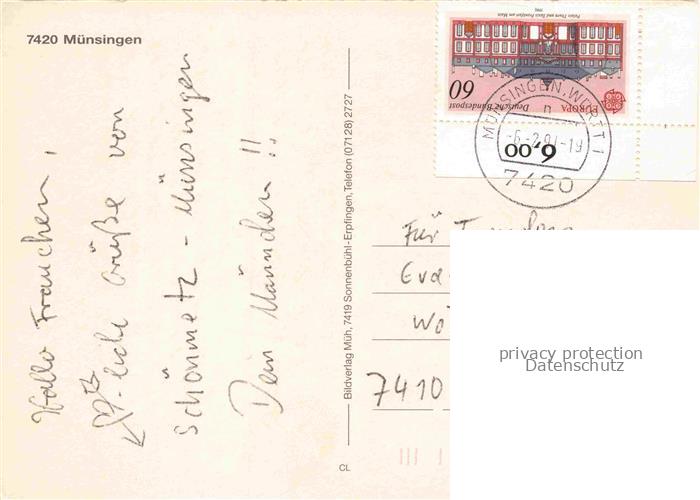 74023704 alte Postkarte Muensingen BW Altstadt Fachwerkhaeuser Luftaufnahme postalisch gelaufen Erhaltung siehe scans [FriedD77] KatCode: 11110008415053