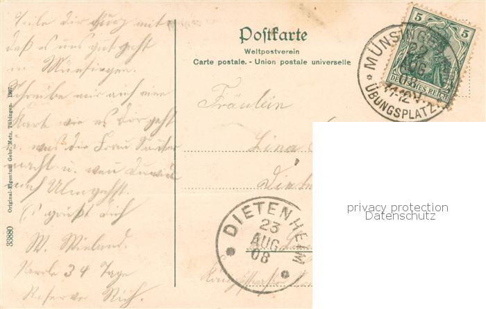 73769190 alte Postkarte Muensingen BW Barackenlager Truppenuebungsplatz Soldatenkompanie postalisch gelaufen Erhaltung siehe scans [FriedD77] KatCode: 11110008415053