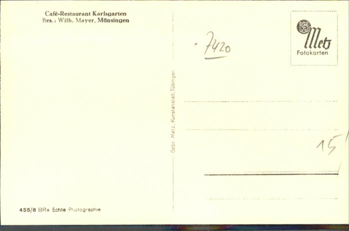 41039550 Muensingen BW Cafe Karlsgarten postalisch nicht gelaufen Alte Ansichtskarte Postkarte Chri Katcode 11110008415053