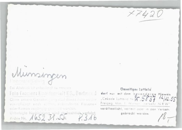 40711391 Muensingen BW Fliegeraufnahme postalisch nicht gelaufen Alte Ansichtskarte Postkarte Katcode 11110008415053