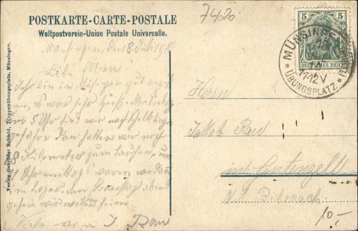 41039375 Muensingen BW Truppenuebungsplatz postalisch gelaufen Alte Ansichtskarte Postkarte alte Postkarte Chri Katcode 11110008415053