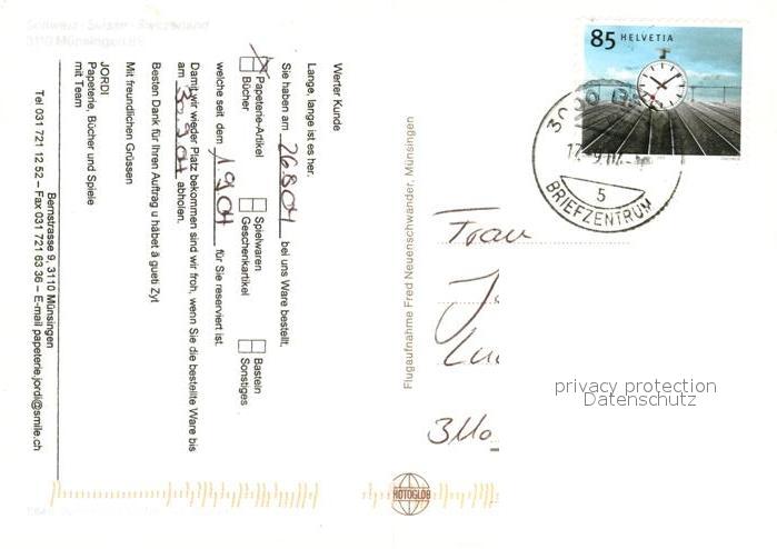 73286008 alte Postkarte Muensingen Fliegeraufnahme mit Alpen postalisch gelaufen Erhaltung siehe scans [LiesaD40] KatCode: 11110008415053