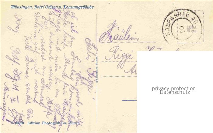 34146167 alte Postkarte Muensingen Gerzensee Konolfingen BE Hotel Ochsen und Konsumgebaeude postalisch gelaufen Erhaltung siehe scans [FriedD77] KatCode: 11470060180340