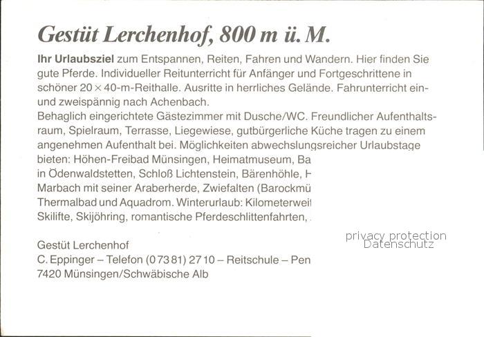 72312496 Muensingen Gestuet Lerchenhof Fliegeraufnahme postalisch nicht gelaufen Werbekarte (keine Postkarte) Erhaltung siehe scans KatCode: 11110008415053