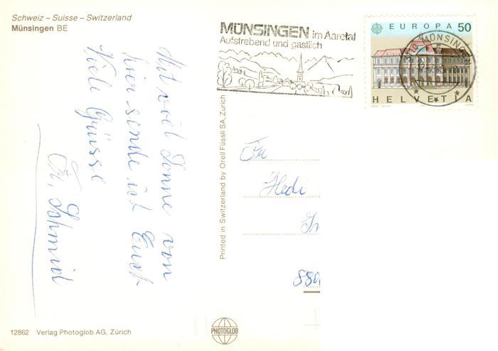 13888564 alte Postkarte Muensingen Konolfingen BE Ortspartien Kirche Bus postalisch gelaufen Erhaltung siehe scans [WerneD78] KatCode: 11470060180340