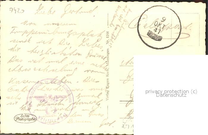 71510646 alte Postkarte Muensingen Ortsansicht Feldpost postalisch gelaufen Erhaltung siehe scans KatCode: 11110008415053